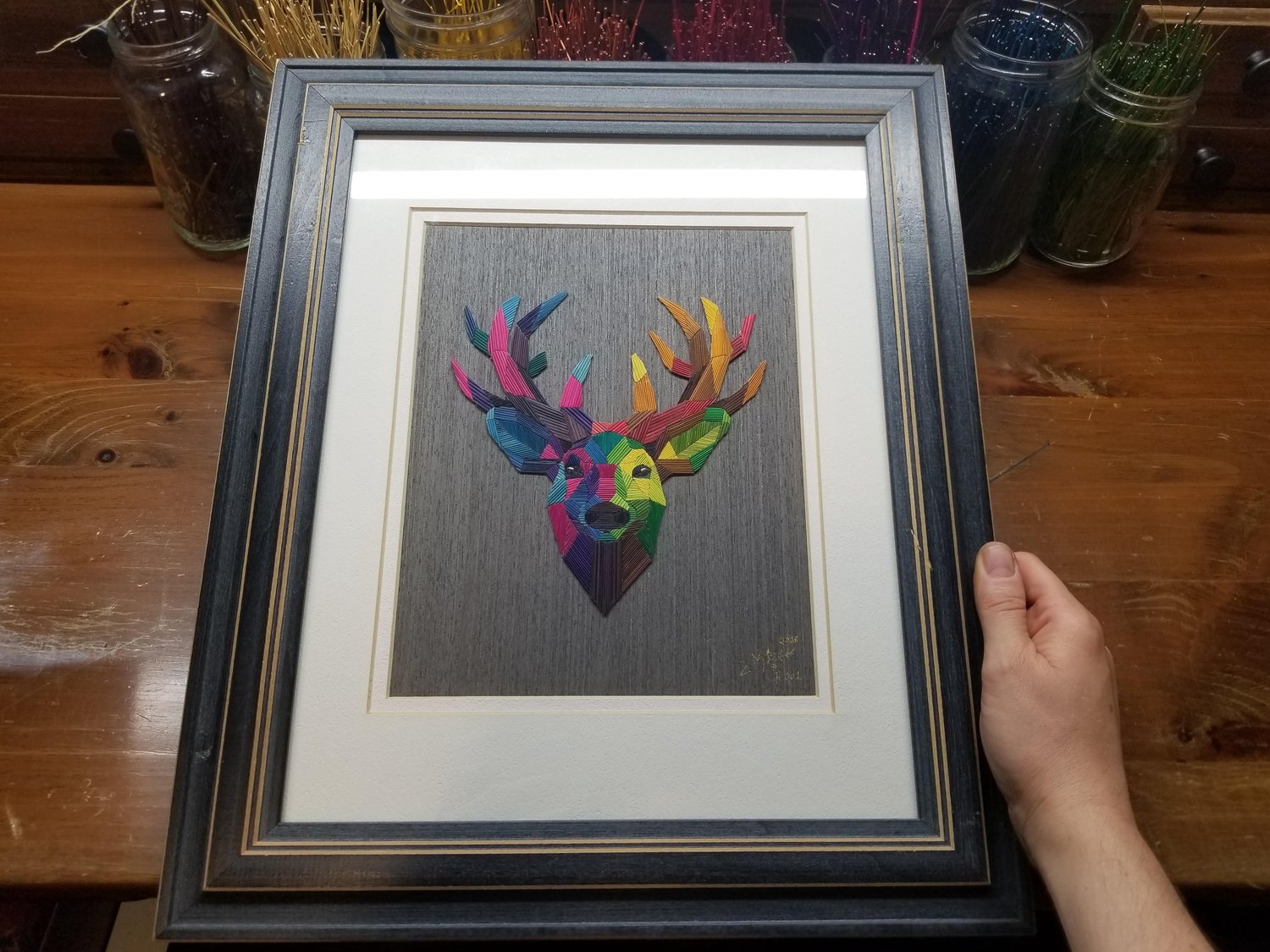 This arrives unframed (flat-packed for shipping), mounted on signed and numbered wood veneer backing large enough to accommodate off-the-shelf frames. (This looks best in a 16" x 20" frame with a mat or double mat, as pictured here.)